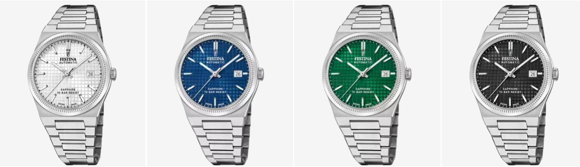 Еще в начале зимы у российского дистрибьютора появились новые модели в стиле спорт-шик. Часы с интегрированным сужающимся браслетом, в стальном корпусе с четко выделяющимся рантом сейчас переживают пик популярности. В Festina к этим качествам добавили узкую полоску насечек на ранте, очень удачную цветовую палитру и несколько вариантов решений.