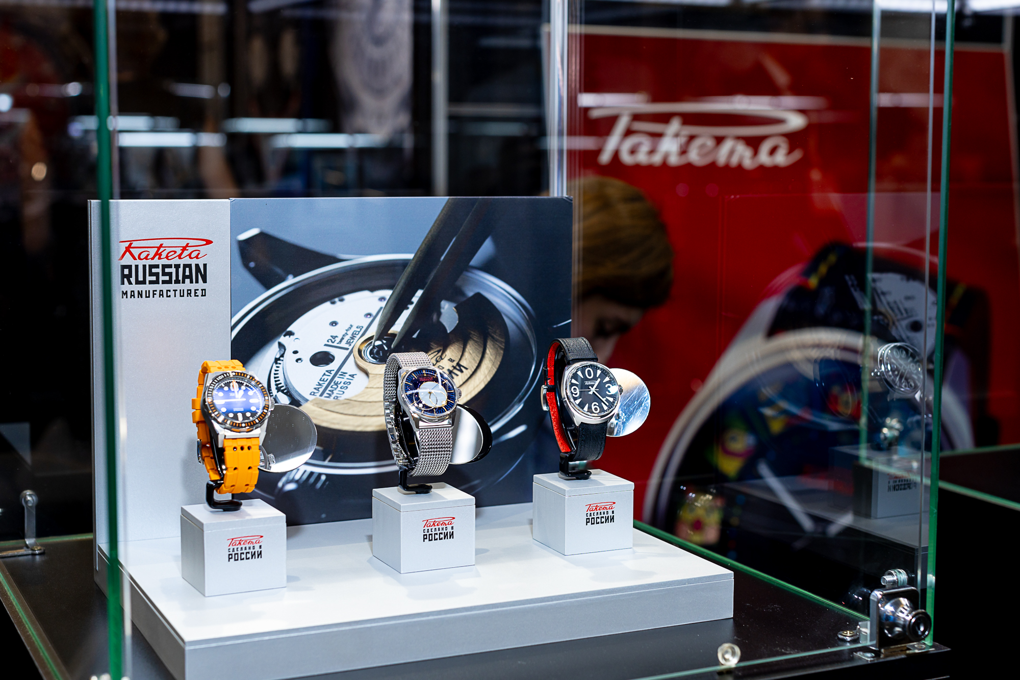 Непривычно много часов, лимиток и серийных моделей, оказалось на стенде «Ракеты». А Чайкин приурочил к выставке запуск второй версии часов «Путник», фотографии которых стали украшением стенда.