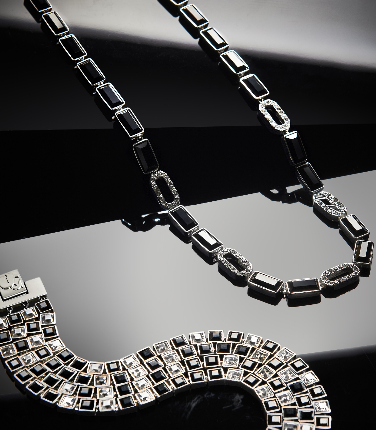 Ювелирные коллекции отражают неповторимый стиль самого Карла Лагерфельда. Колье и браслеты выполнены из множества переплетающихся цепочек, украшенных подвесками в виде его культовых аксессуаров: кожаных перчаток без пальцев, изящных вееров и черных солнцезащитных очков. Особую личную ноту вносят подвески в форме сердца. Главные хиты сезона — классические колье и браслеты в стиле tennis, обновленные каскадами прозрачных кристаллов и глубоких черных оттенков. Все изделия украшены кристаллами и фирменным знаком Karl.
