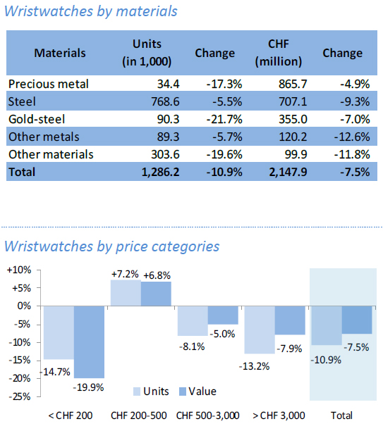 Только трамповскими пошлинами ситуацию не объяснить. На горизонте 11 месяцев, с начала года, отгрузки в США сократились на 2%, в Японию на 6%, в Китай – почти на 13%. В ноябре в минусе оказались все без исключения товарные группы. В деньгах медленнее всех падали часы из драгметаллов (-4,9%), в количестве – из стали (-5,5%). Единственной позитивной ценовой категорией оказались часы с экспортными ценами 200-500 франков (диапазон Tissot-Hamilton). Самой проблемной – нижняя, до 200 франков, там отгрузки упали на 14,7 в количестве и на 20% в стоимости. Проблемы этой категории нашли отражение в структуре экспорта с точки зрения механизмов: количество отправленных за рубеж кварцевых часов упало на те же 15% Если бы не падение отгрузок в США, ноябрьский экспорт вырос бы на 1,7%. 14 ноября, после встречи с представителями швейцарского бизнеса, Трамп объявил о снижении пошлины с 39% до 15%. Можно ожидать, что в декабре поток часов в США начнет возвращаться к более-менее нормальным объемам.