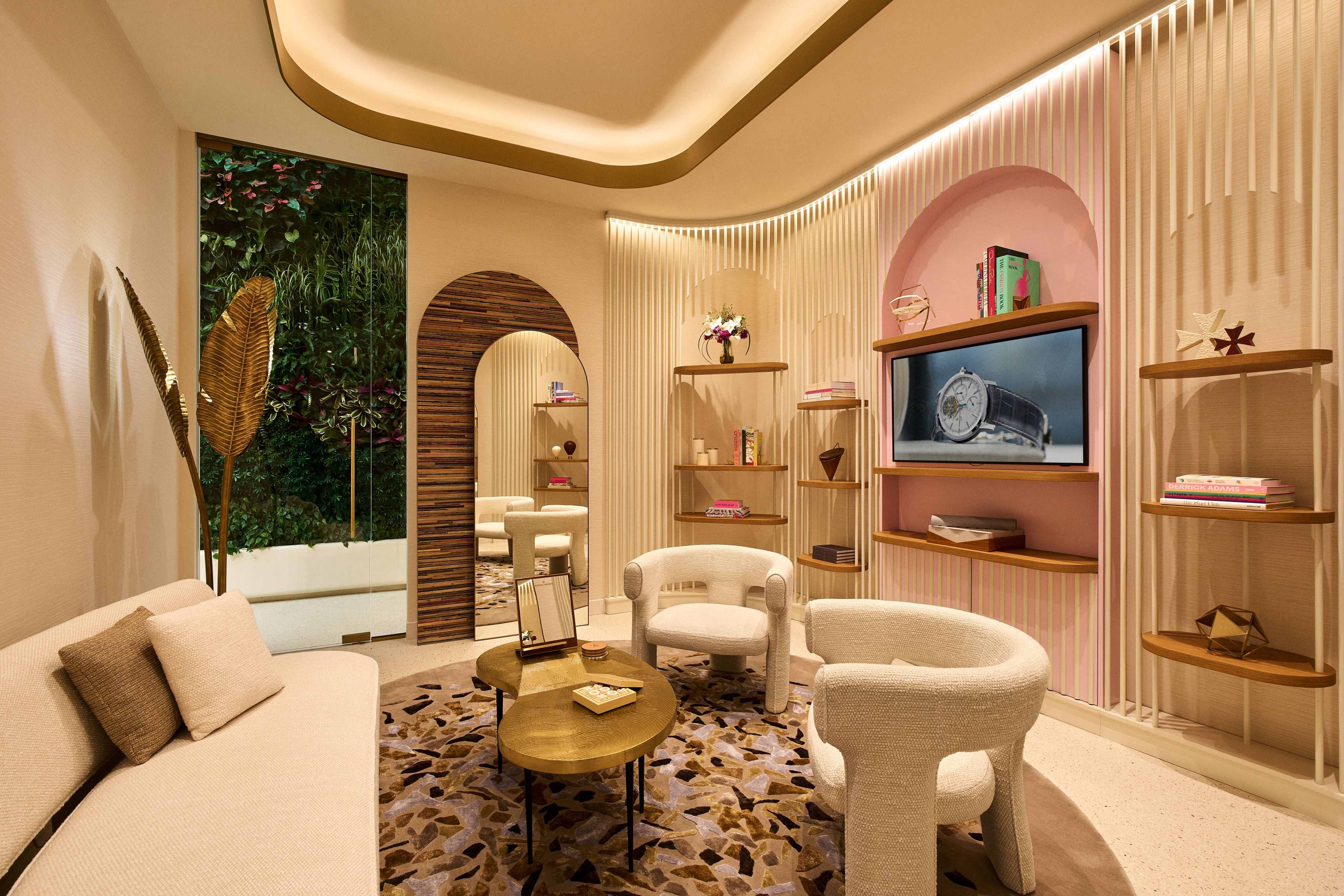 На первом этаже - выход в зеленый внутренний дворик, расположенный напротив специальной галереи, в которой будет представлена выставка художников, отражающая связь города с искусством, а также часы из частной коллекции Vacheron Constantin.