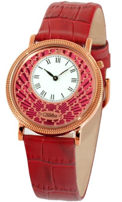 Механические часы с механизмом «Слава» 2428, с двойным календарем, с противоударным устройством узла баланса; Водозащита (WR) 30м; Минеральное стекло; Кожаный ремешок; Корпус изготовлен из часовой латуни с декоративным покрытием; Запас хода до 36 часов; Диаметр 42 мм.