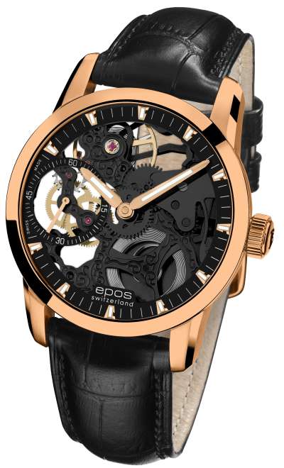 Особенности: скелетонизированный декорированный циферблат, декорированный механизм, прозрачная задняя смотровая крышка,