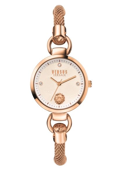 Механизм: Citizen 2035, 3-стрелочный кварц. Корпус: 34мм, нержавеющая сталь, покрытие IPRG (розовое золото). Циферблат: цвет белый, голова льва на 18ч, кристаллы Swarovski на 12ч, 15ч, 21ч. Браслет: плетение из нержавеющей стали с покрытием IPRG (розовое золото), объемный логотип в форме головы льва на 12ч и 18ч. WR: 3 ATM