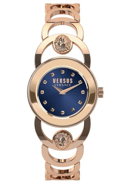Механизм: Citizen 2025, 2-стрелочный кварц. Корпус: 32мм, нержавеющая сталь, покрытие IPRG (розовое золото). Циферблат: цвет синий, эффект лучей (Sunray). Браслет: нержавеющая сталь с покрытием IPRG (розовое золото), объемный логотип в форме головы льва на уровне 12ч и 18ч, звенья легко регулируются по размеру. WR: 3 ATM