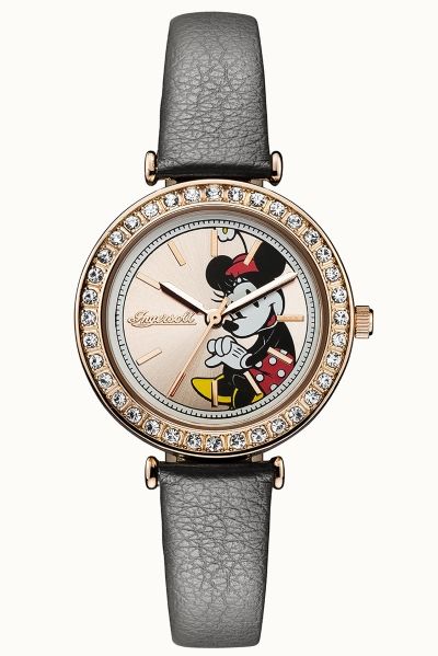 Украшенная инкрустированным камнями внешним безелем, и оснащенная ясным циферблатом с легендарным дизайном с Минни Маус, оказавшим влияние на производство часов с персонажами, модель Disney ID00302 представляет богатую историю компании Ingersoll, что делает ее обязательным аксессуаром в Вашем гардеробе.