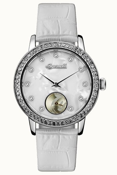 Дизайн усыпанной камнями кварцевой модели Ingersoll ID00701 дополнен перламутровым циферблатом - характеристика, делающая эти часы уникальными для каждого владельца. Замечательным дополнением к этим часам является логотип Микки Мауса, расположенный на маленьком дополнительном циферблате.