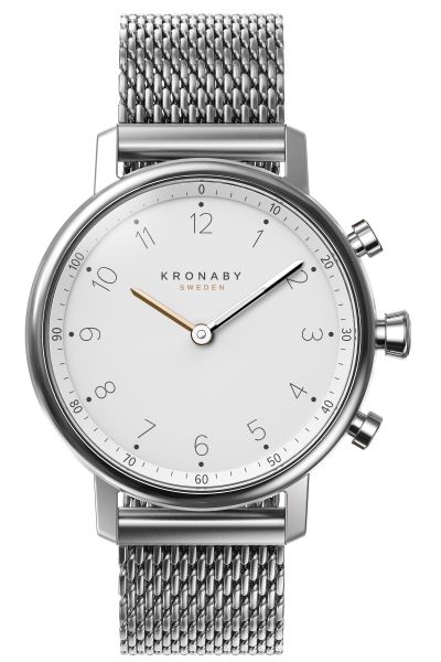 ОПИСАНИЕ: Smart-часы; Функция Bluetooth; Корпус и mesh-браслет из нержавеющей стали 316L; Размер корпуса: 38 мм; Циферблат белого цвета; Сапфировое стекло с антибликовым покрытием; WR 10 АТМ