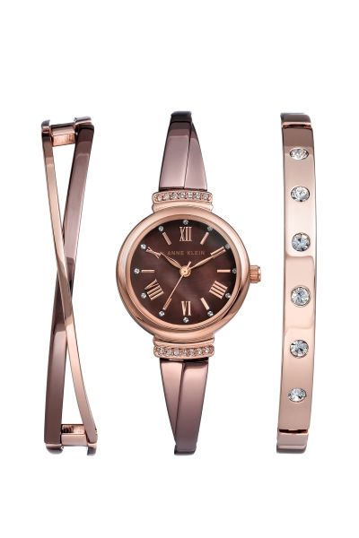 Корпус: 26 мм, Rose Gold PVDЦиферблат: коричневый Mother of Pearl, кристаллы, лого в зоне 12-ти часов, минеральное стекло