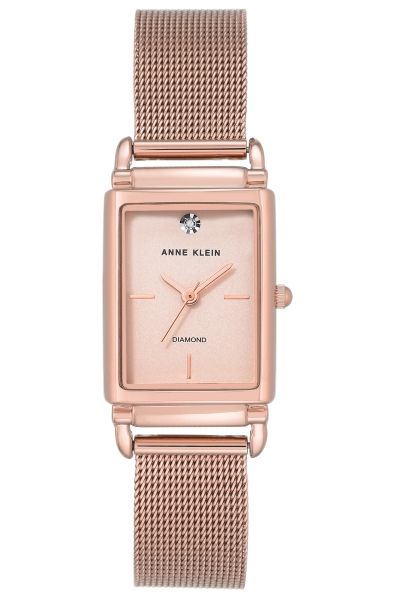 Корпус: 21х31.5 мм, Rose Gold PVDЦиферблат: цвет розового золота, бриллиант и лого в зоне 12-ти часов, минеральное стекло