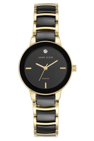Корпус: 30 мм, Gold PVDЦиферблат: черный глянцевый, бриллиант и лого в зоне 12-ти часов, минеральное стекло