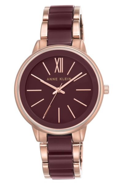 Браслет с Rose Gold PVD и пластиковыми вставками цвета бургунди