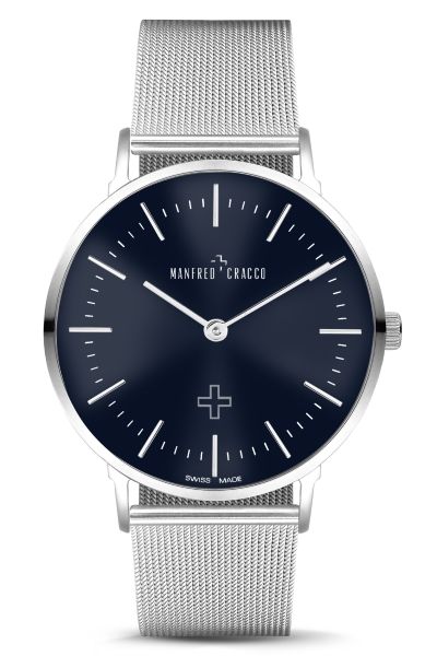 Кварцевый механизм: Ronda 762SW. Корпус и меш-браслет: нержавеющая сталь 316L, сапфировое стекло, размер циферблата 40 мм, цвет циферблата синий. Водозащита: 3 ATM