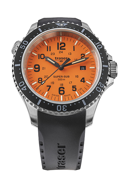 Циферблат: оранжевый, 12 и 24 часовая шкала, керамический безель