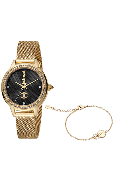 Корпус: нержавеющая сталь с PVD покрытием цвета желтого золота, украшенный кристаллами