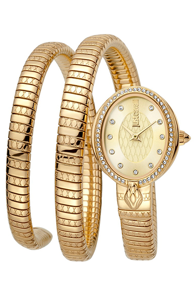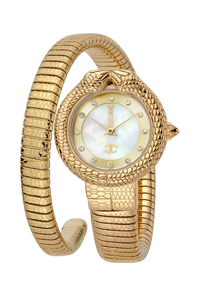 Корпус: нержавеющая сталь с PVD покрытием цвета желтого золота, безель в форме змеи