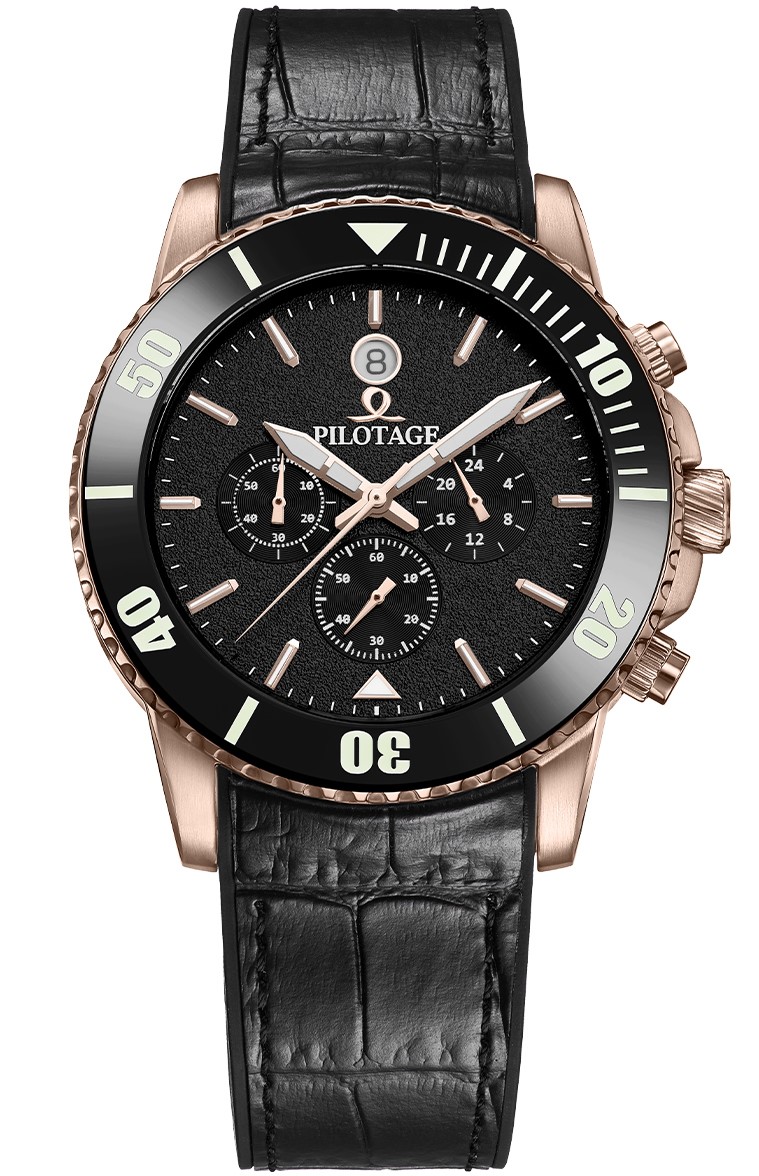 Секундный и минутный накопители, 24 часа, большая дата, люминесцентное покрытие стрелок и индексов
