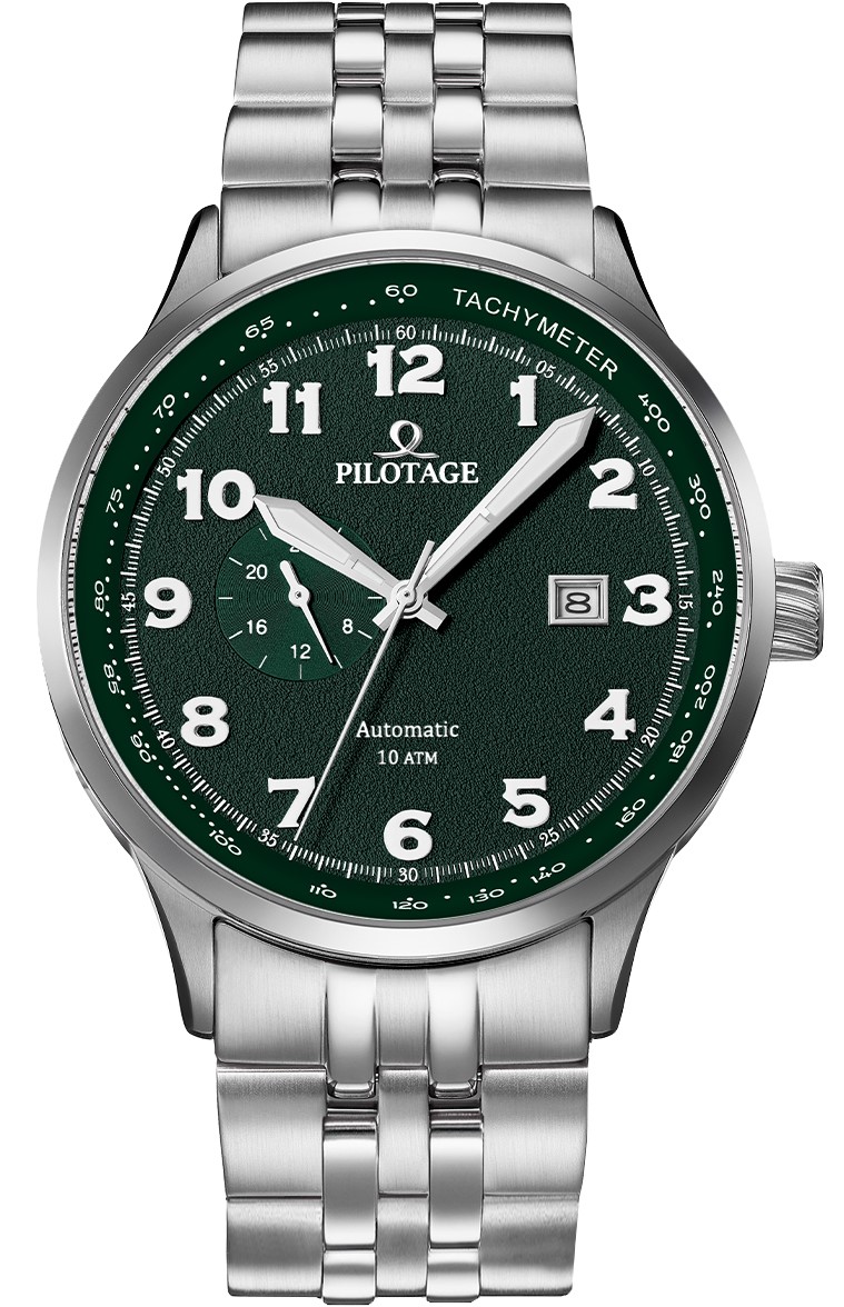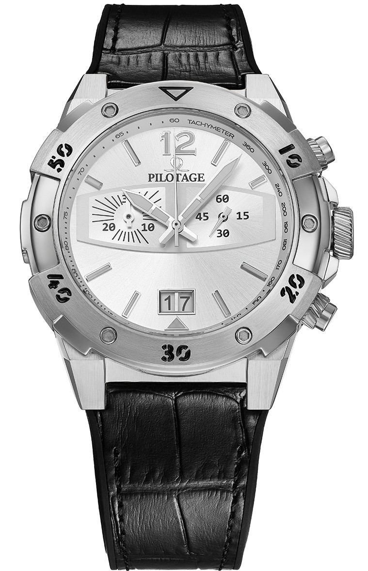 Счетчик минут, вынесенная секундная стрелка, большая дата, тахиметрическая шкала, люминесцентное покрытие стрелок и индексов