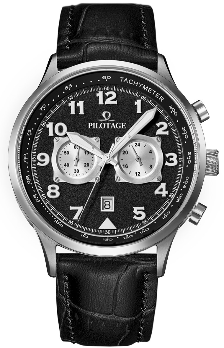 Дата, 24 часа, тахиметрическая шкала, люминесцентное покрытие стрелок и индексов