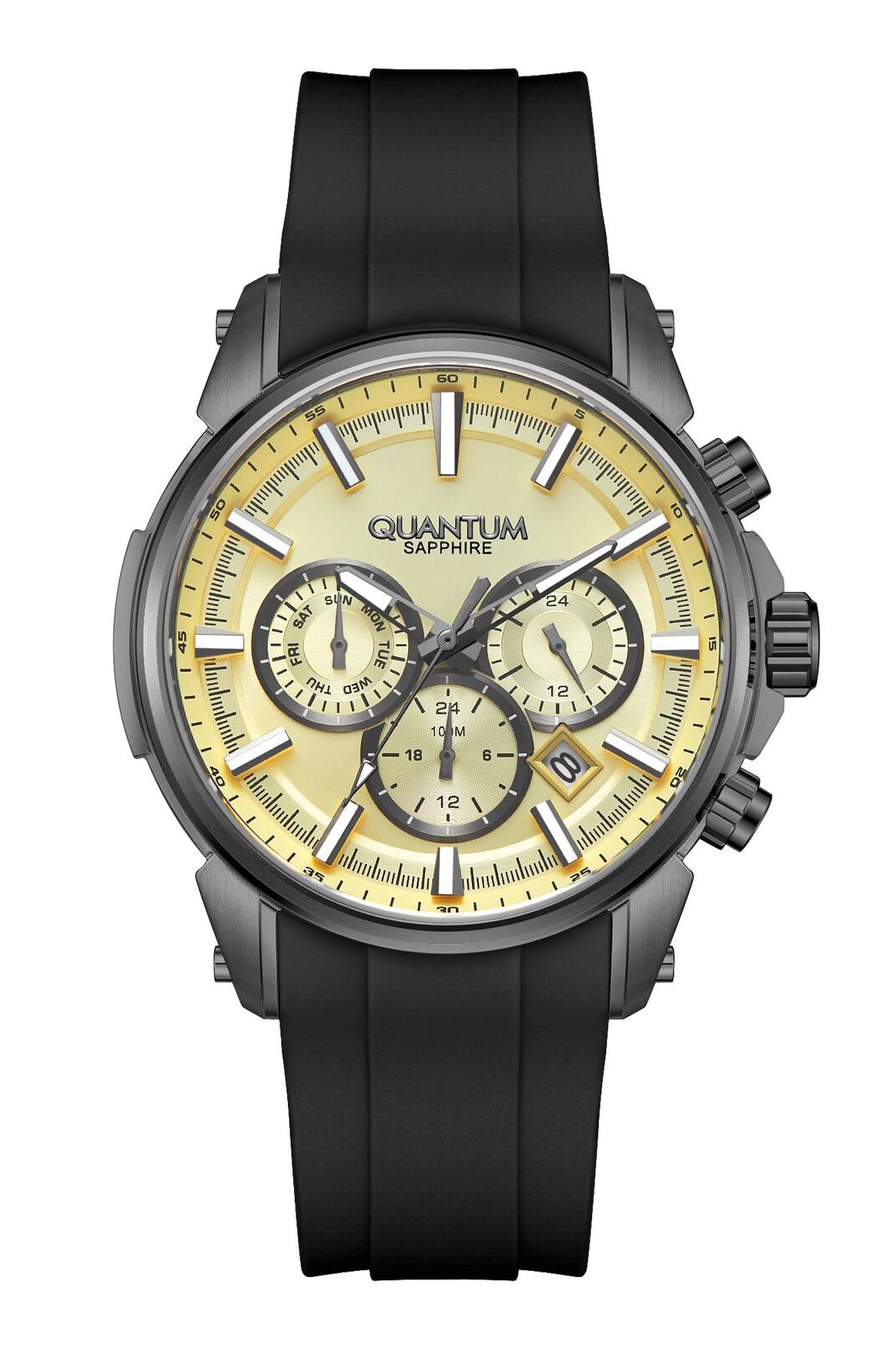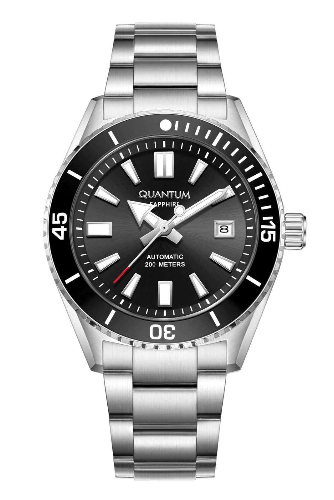 Сапфировое стекло, вращающийся безель, люминесцентные стрелки и индексы
