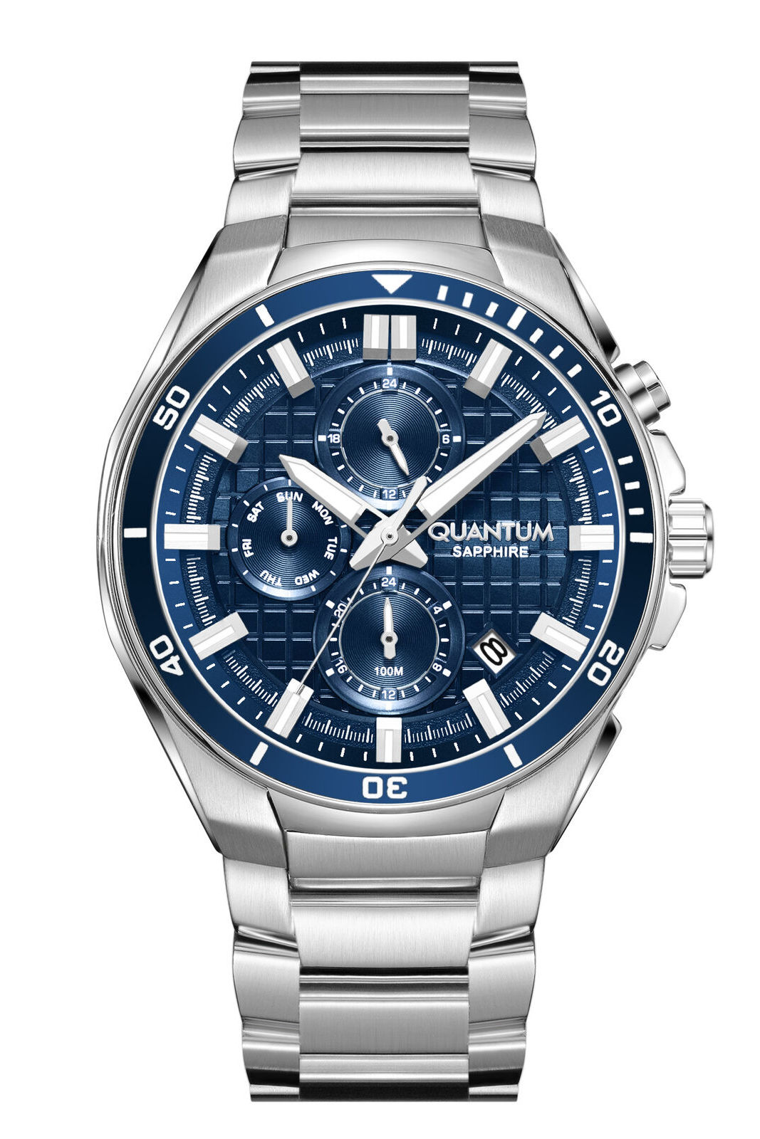Сапфировое стекло, вращающийся безель, люминесцентные стрелки и индексы