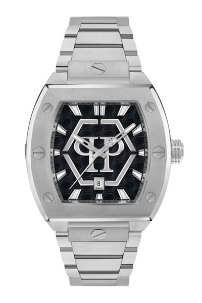 Циферблат: чёрного цвета; текстурная обработка «гексагон»; окно даты. Центральный акцент – шестиугольник с двойным логотипом «PP».
