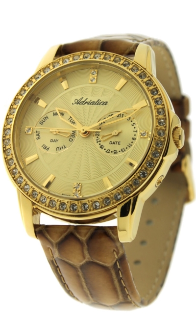 Корпус: нержавеющая сталь с PVD покрытием, инкрустация цирконами