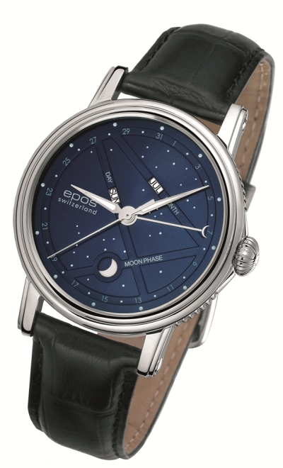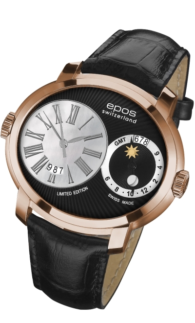 Особенности: два независимых механизма, индикация даты сразу в двух часовых поясах- уникальная разработка компании EPOS, прозрачная задняя смотровая крышка,