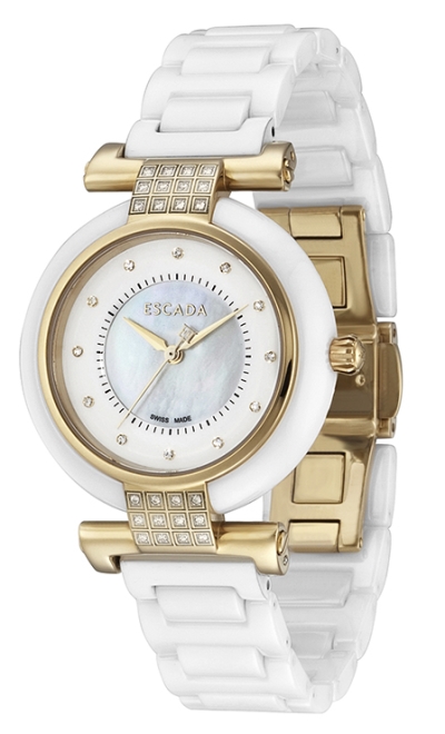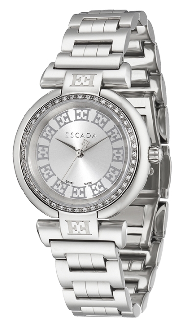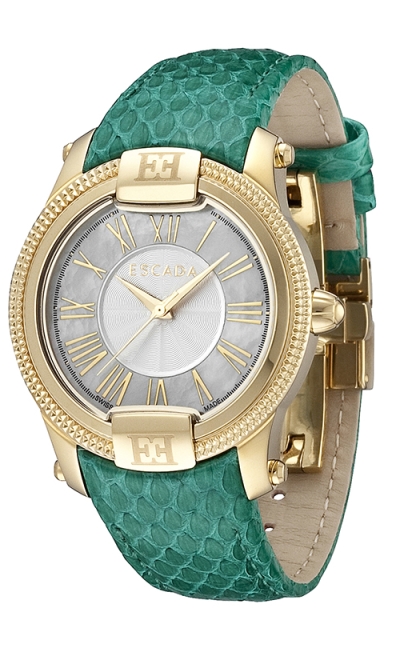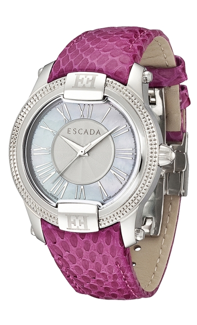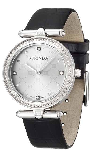 Циферблат: черного цвета, текстурный узор фирменным лого Escada, 2 стрелки.