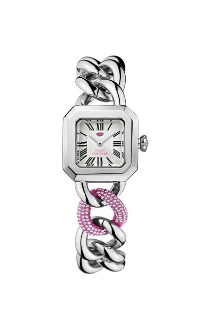 Циферблат: индексы времени - Римские цифры, розовый логотип Juicy Couture