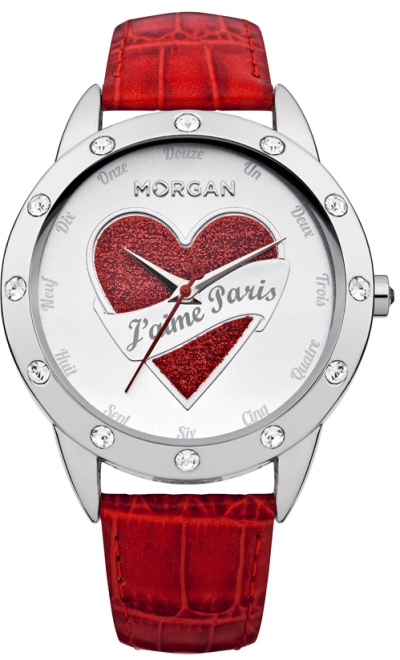 Соблазнительный и притягивающий взгляды аксессуар, словно специально созданный для тех, кто хочет признаться в любви Парижу. Гармоничный союз сияющих сердец на циферблате и чешских кристаллов на внешнем ранте - свежее решение в дизайне элегантной версии. Уравновешивают блистательный образ - кожаные ремни, выполненные в фирменных цветах MORGAN – красном, белом и черном.