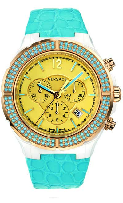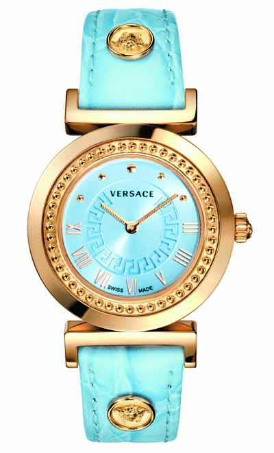 Циферблат: голубой, внутренняя обработка в виде греческого орнамента, римские индексы, логотип Versace