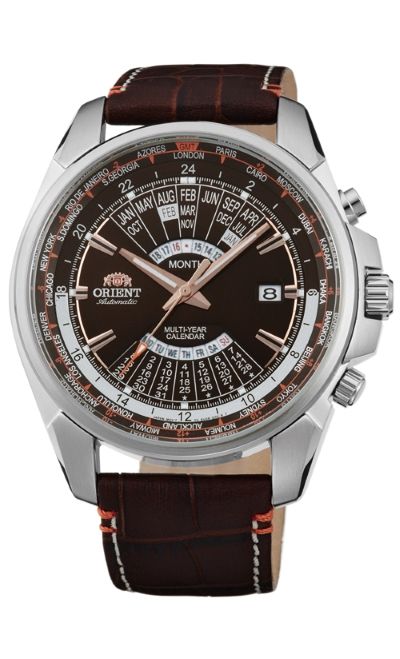 Механические часы с автоподзаводом; WR 50; Мужские; Минеральное стекло; Нержавеющая сталь; Запас хода около 40 часов; Мультикалендарь; Индикация числа, дня недели, месяца, года, а также табличный календарь на весь месяц; Люминесцентное покрытие на стрелках и индексах
