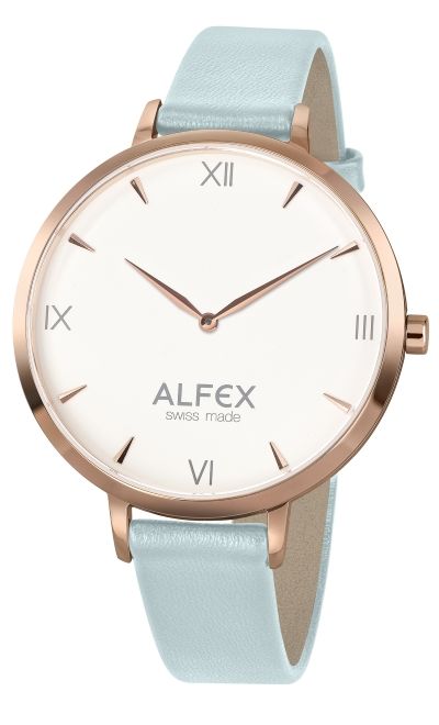 Женская кварцевая модель Arcadia, корпус из запатентованного полированного стального покрытия, циферблат белый с точками из розового золота, кожаный ремешок голубого цвета, сапфировое стекло, d=36 мм, 3 АТМ