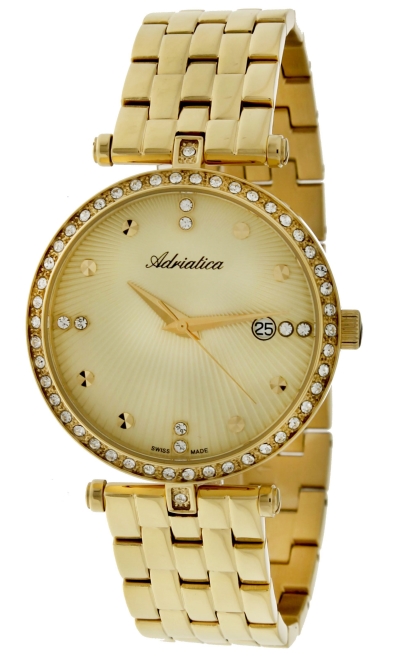 Корпус: нержавеющая сталь с PVD покрытием, инкрустация цирконами