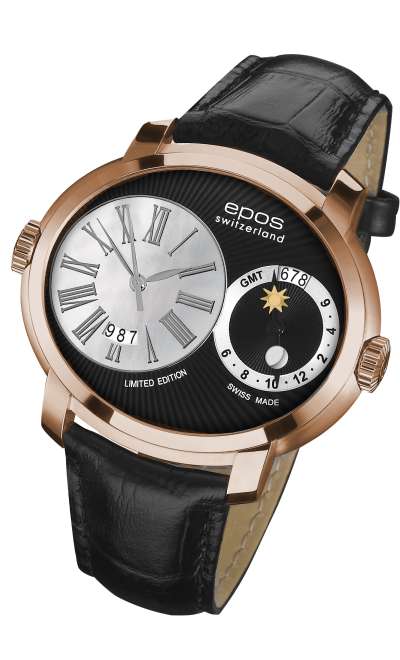 Особенности: два независимых механизма, индикация даты сразу в двух часовых поясах- уникальная разработка компании EPOS,