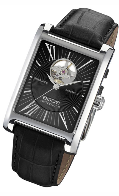 Особенности: окошко даты в положении «6 часов», открытый баланс в «12 часах», сапфировое стекло, прозрачная задняя смотровая крышка, гильошированный циферблат с римскими цифрами