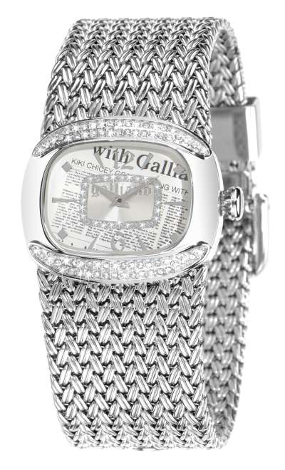 Безель и циферблат: фирменный принт «газета», кристаллы