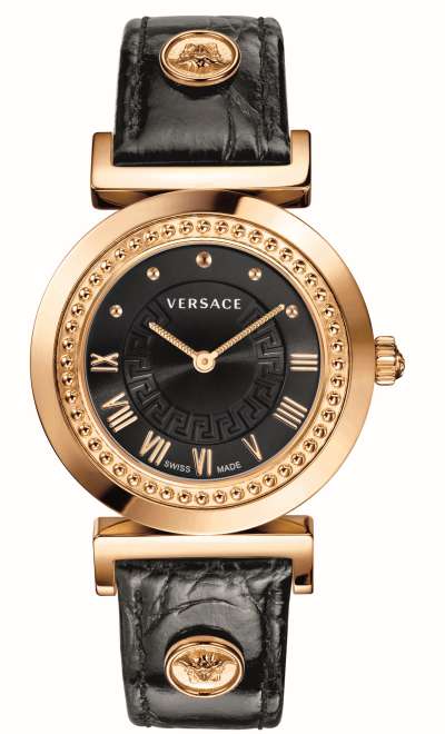 Циферблат: черный, внутренняя обработка в виде греческого орнамента, римские индексы, логотип Versace