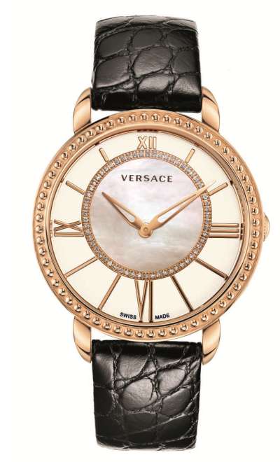 Циферблат: черный перламутр с фирменным знаком Versace (голова Медузы)