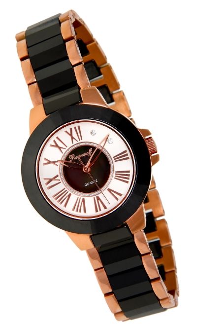 Корпус и браслет: гипоаллергенная нержавеющая сталь, 3 мкр позолота красным золотом, черная керамика