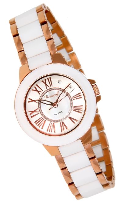 Циферблат: белый, натуральный морской перламутр, римские цифры, фианит в короне