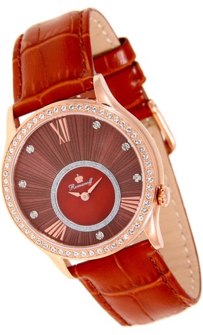 Циферблат: коричневый, фигурная чеканка, натуральный перламутр, кристаллы Swarovski, позолоченные римские цифры