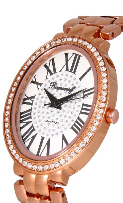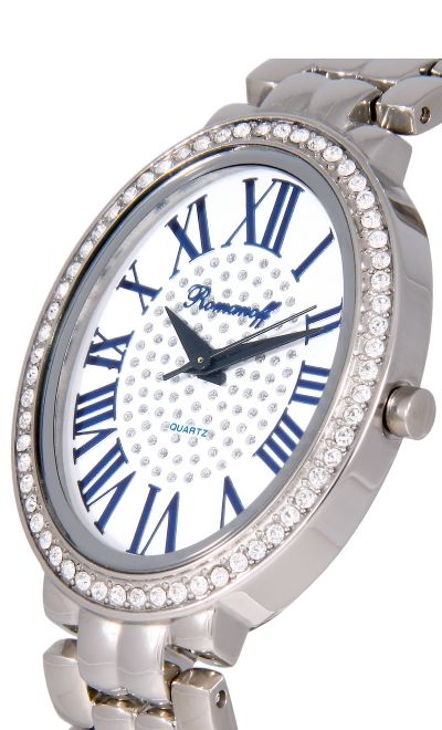 Циферблат: белый, фигурная чеканка, кристаллы Swarovski, римские цифры