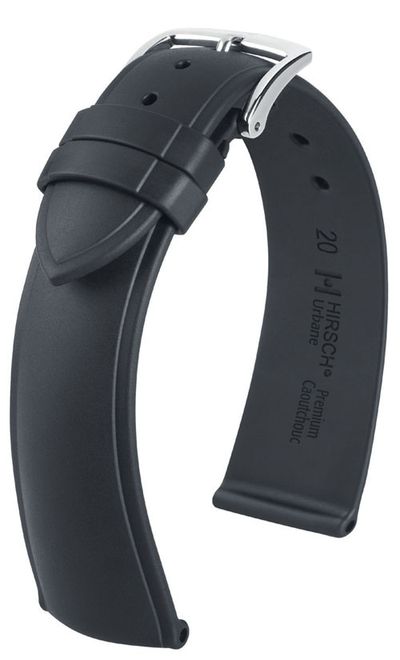 3. Urban - Каучуковый браслет с классическим дизайном. Строгая форма подходит широкому кругу часов. HIRSCH Premium Caoutchouc - лучший материал для функциональных браслетов. Абсолютно водонепроницаемый, держащий форму, стойкий на разрыв и устойчивый к внешним воздействиям, таким как УФ излучение, химикаты, экстремальная жара или холод. Идеально подходит людям с чувствительной кожей. РРЦ 3 900