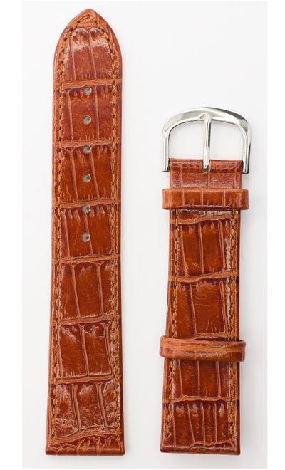 Объемный, массивный, прямой формы ремешок для часов. С прошивкой выполненной крупными стежками, поверхность кожи глянцевая, имитация кожи крокодила.