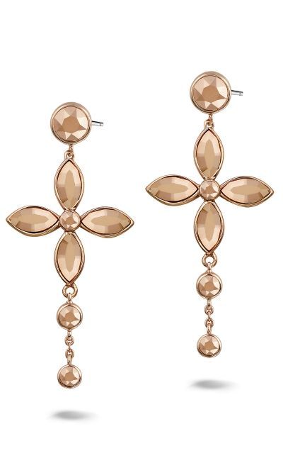 Сталь, покрытие розовым 18 К золотом, стразы Swarovski, смола.
